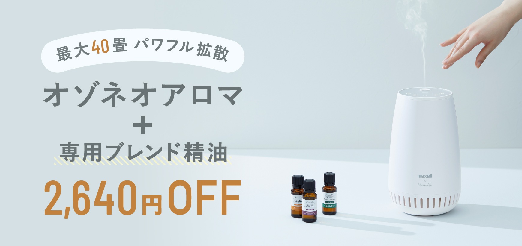 期間中、オゾネオアロマと専用ブレンド精油購入で2,640円OFFになるキャンペーンを実施いたします。